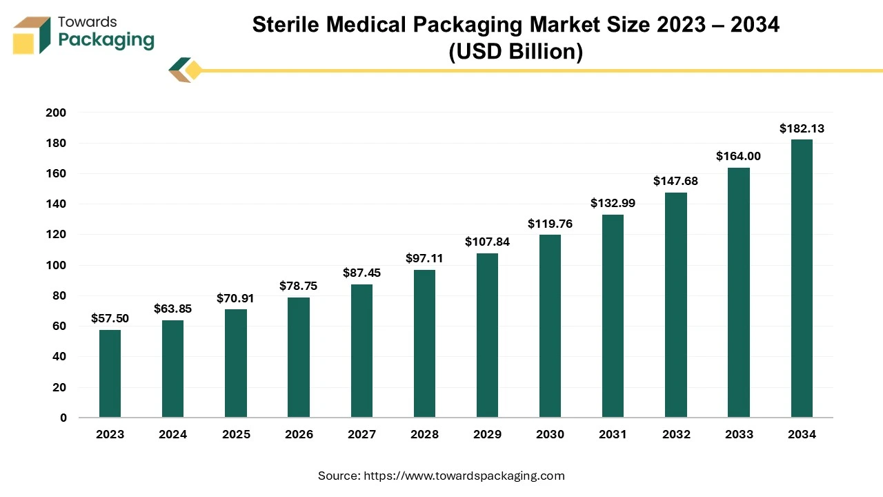 As per market analysts at Towards Packaging, the global sterile medical packaging market is expected to grow from USD 78.75 billion in 2026 to nearly USD 182.13 billion by 2034, registering a CAGR of 11.05% between 2025 and 2034.